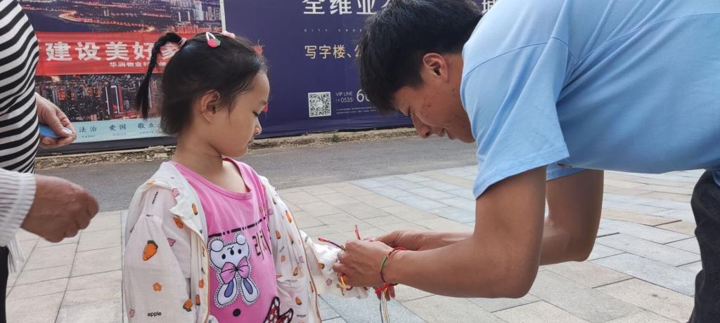 6月11日下午,学院各老师与学生抵达了华润社区,慰问了社区的老人,并为社区小朋友们系上了精致的五彩绳,寓意吉祥安康。五彩绳古代也叫长命缕,端午节当天系在手腕,脚腕带地方,可以避邪,防五毒。五彩绳寓意平安吉祥,带来好运,祝福平安。节日当日,把五彩绳系在手腕上,然后等第一场雨,或者洗澡时,让河水冲走。活动一直举行至傍晚,红绳在夕阳的余辉中映衬出了孩子们的愉悦与社区老人们的幸福,beat365官网老师和学生也在和谐温暖的氛围中离开了社区。至此,本次活动到此结束。