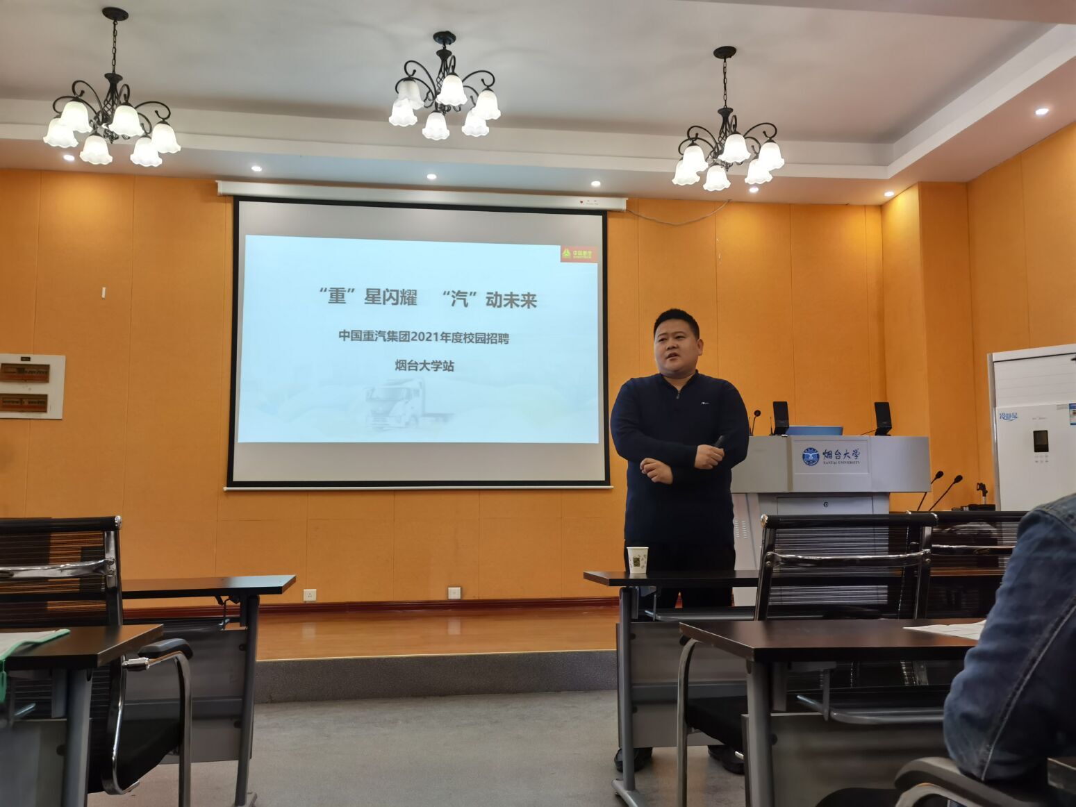 为促进毕业生就业工作,搭建毕业生与用人单位的沟通交流平台,beat365官网于3月18日在beat365官网院馆218举办春季招聘会。本次的招聘企业为中国重型汽车集团有限公司,招聘会由公司组织与人力资源部经理何震进行宣讲,beat365官网2021届毕业生积极参加。