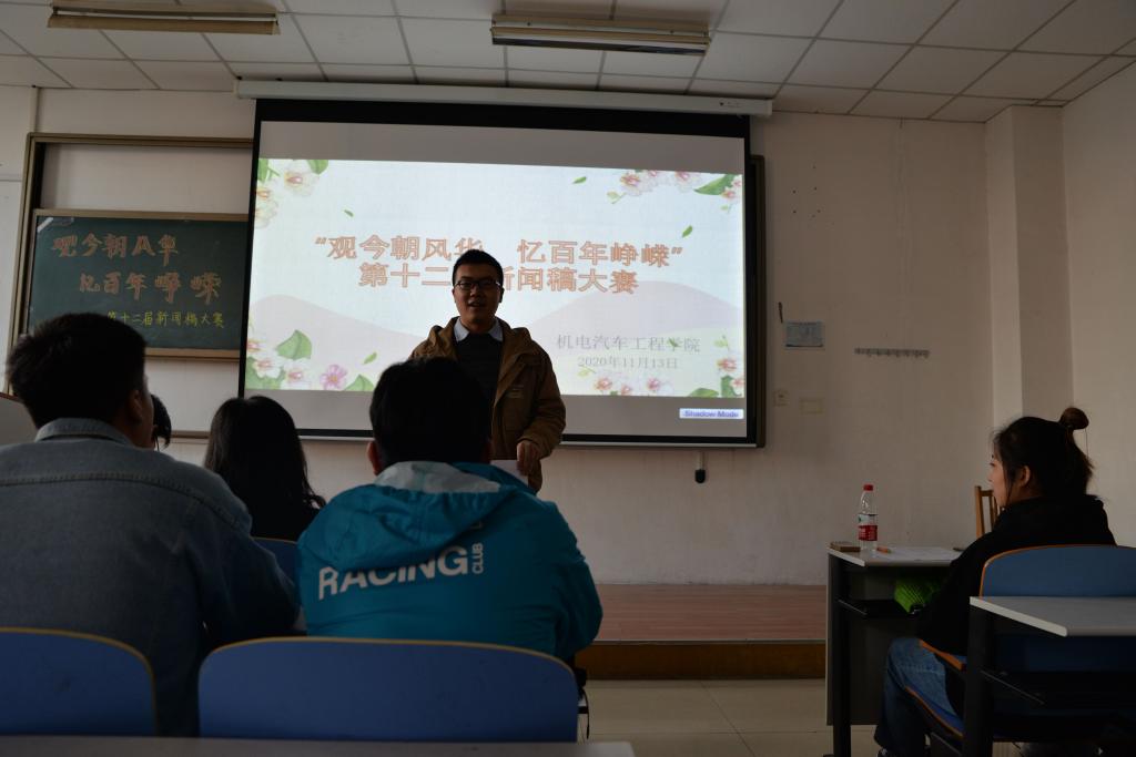 为提高学生的写作积极性和写作水平,beat365官网于11月13日在综合楼219室举办了以“观今朝风华,忆百年峥嵘”为主题的第十二届新闻稿大赛。其参赛评委有beat365官网辅导员老师张新莉、马宝林,团委副书记毛鹏辉,新闻中心主任刘延琦、副主任周长志,学生会办公室部长赵广争,车协秘书部部长尚呈军,优秀新闻宣传工作代表梁仲宇、詹佳峄以及青协传媒部部长孙栩。