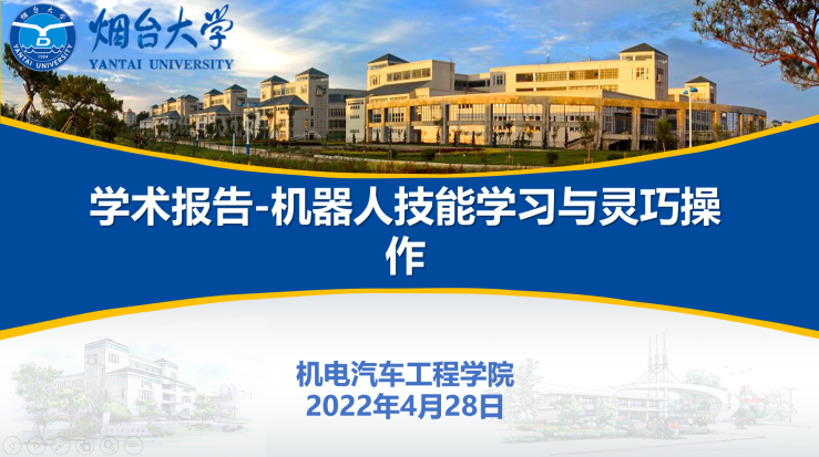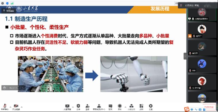 4月28日晚上,beat365官网举办题为“机器人技能学习与灵巧操作”的报告会,本次报告会由山东大学科学技术研究院副院长,长江学者,宋锐教授主讲,我院部分老师和研究生参加报告会,报告会采用线上形式进行。