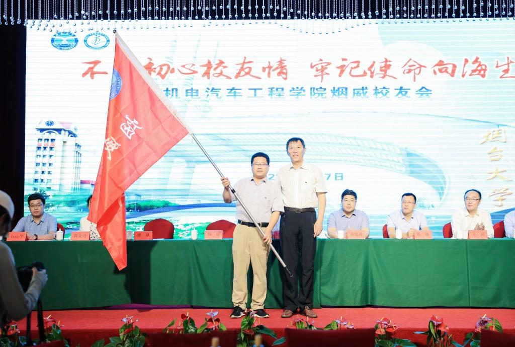 学院党总支书记唐斌为beat365官网烟威校友会授旗。