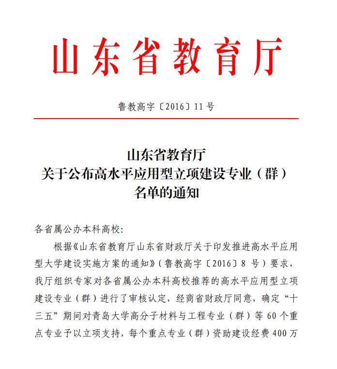 beat365官网获批山东省高水平应用型立项建设专业(群)